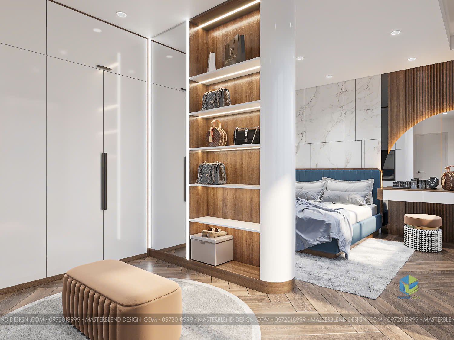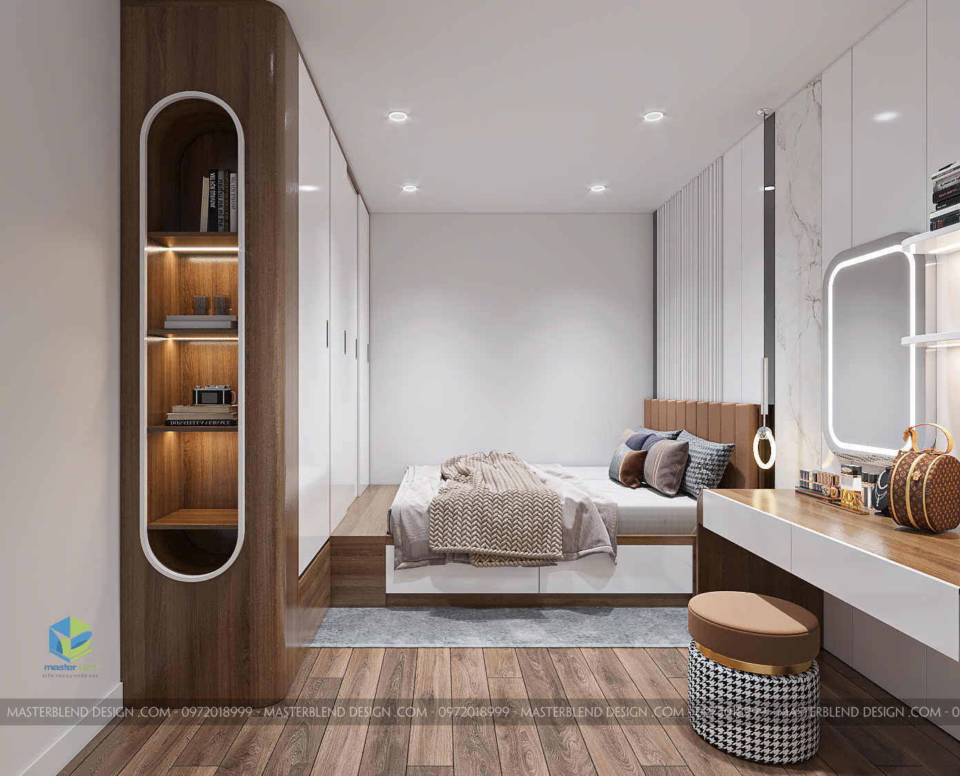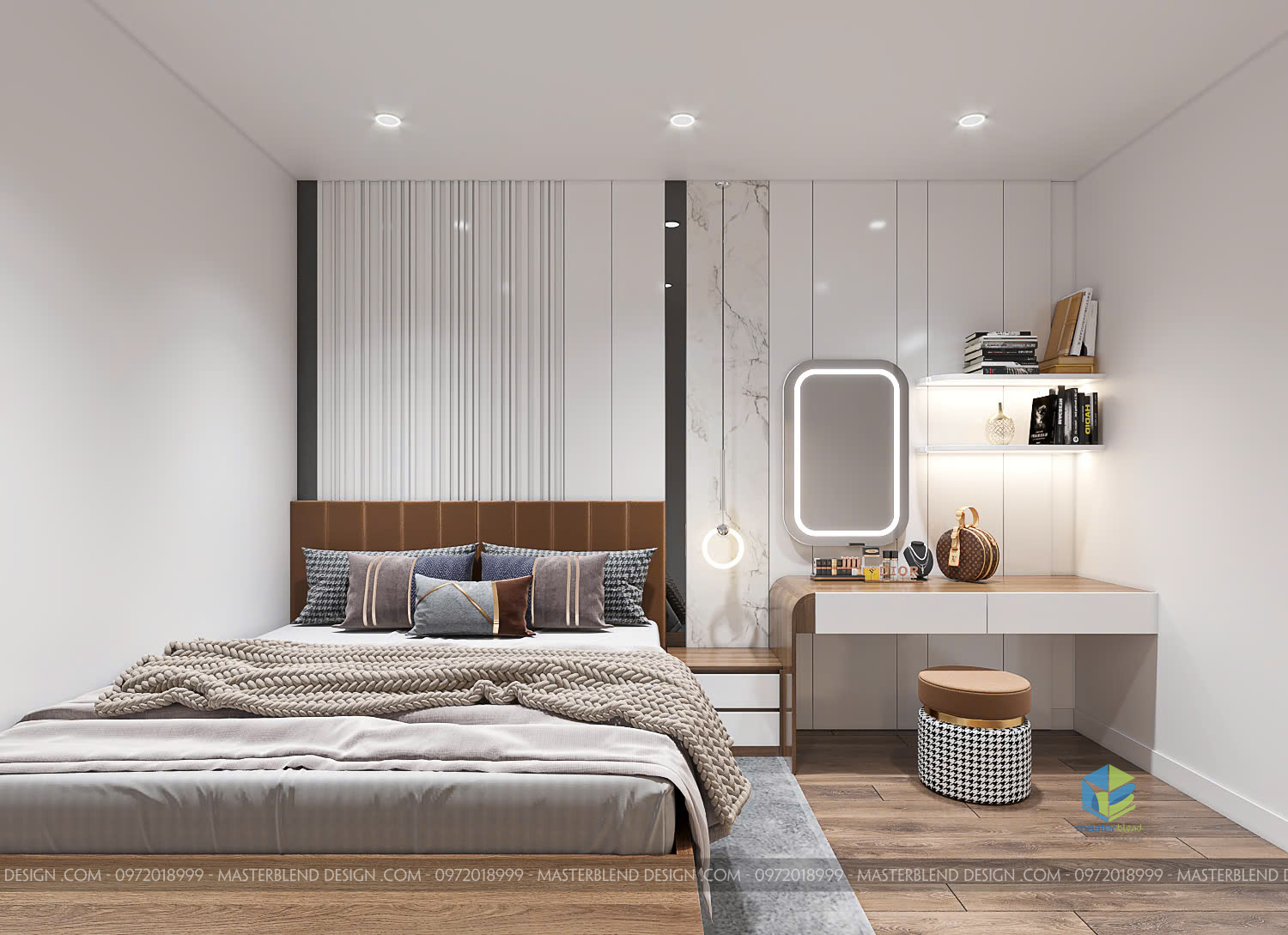• Các chi tiết nội thất như tủ quần áo, bàn trang điểm được thiết kế tích hợp và tiết kiệm không gian.