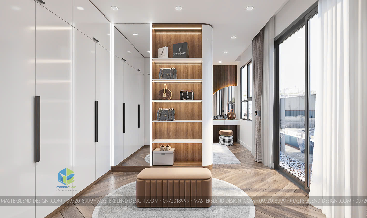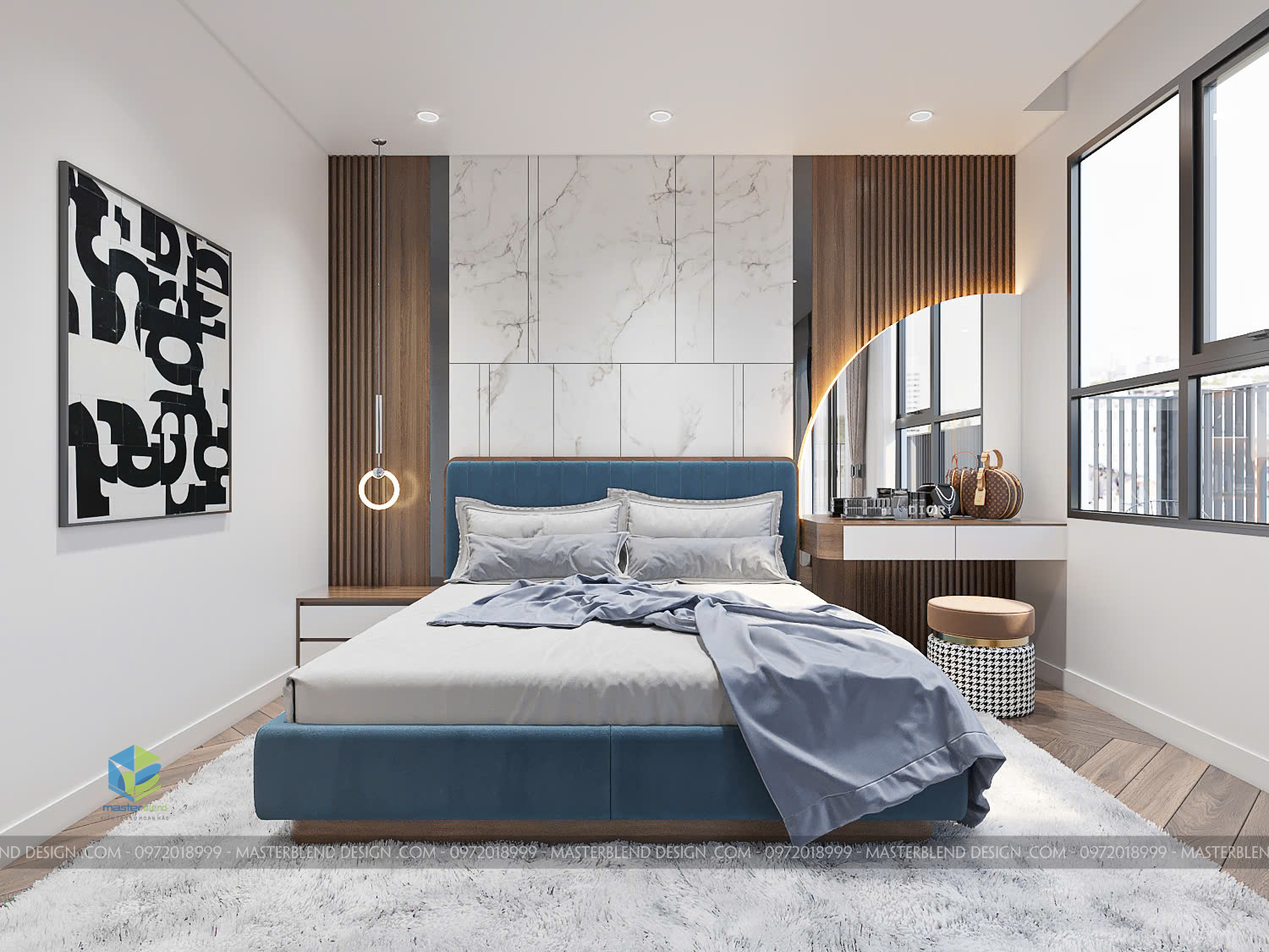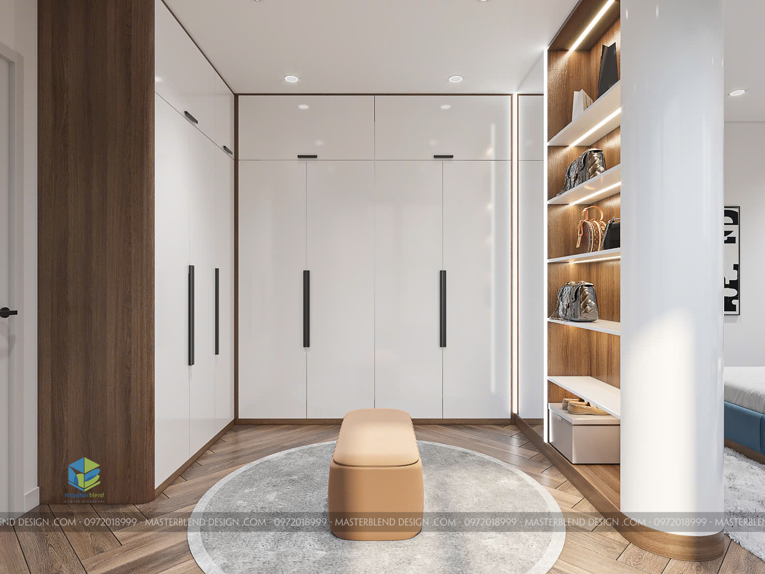 • Các chi tiết nội thất như tủ quần áo, bàn trang điểm được thiết kế tích hợp và tiết kiệm không gian.
