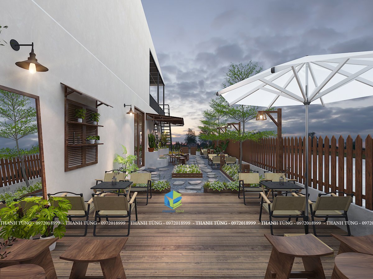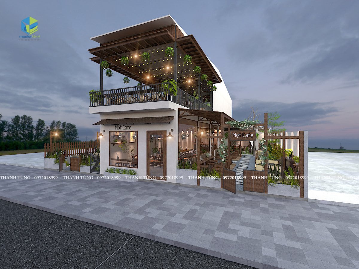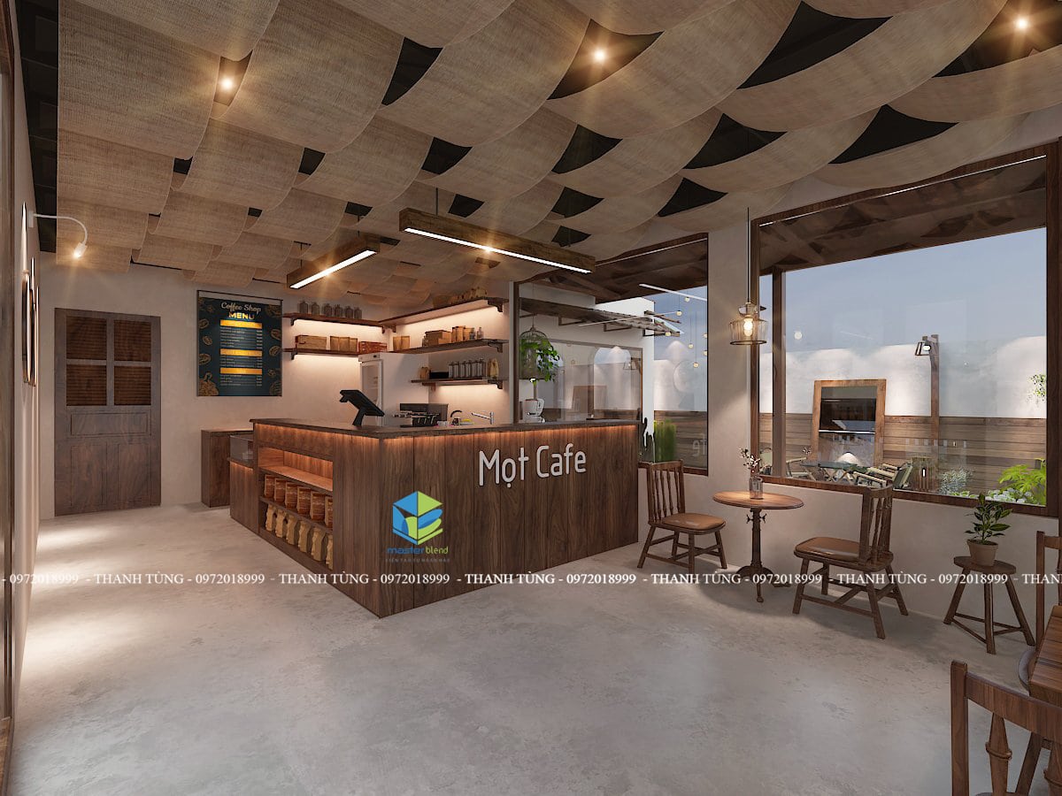 Không gian mở cùng với phong cách thiết kế hiện đại, trẻ trung mang một chút màu sắc Địa Trung Hải khiến thiết kế quán Mọt cafe càng trở nên nổi bật và ấn tượng hơn. Đây chắc chắn sẽ là một địa điểm lý tưởng, rất CHILL  mà khách hàng không thể bỏ qua. Cùng ngắm nhìn phối cảnh 3D của quán được thực hiện bởi Masterblend để hiểu rõ hơn về công trình này nhé.
