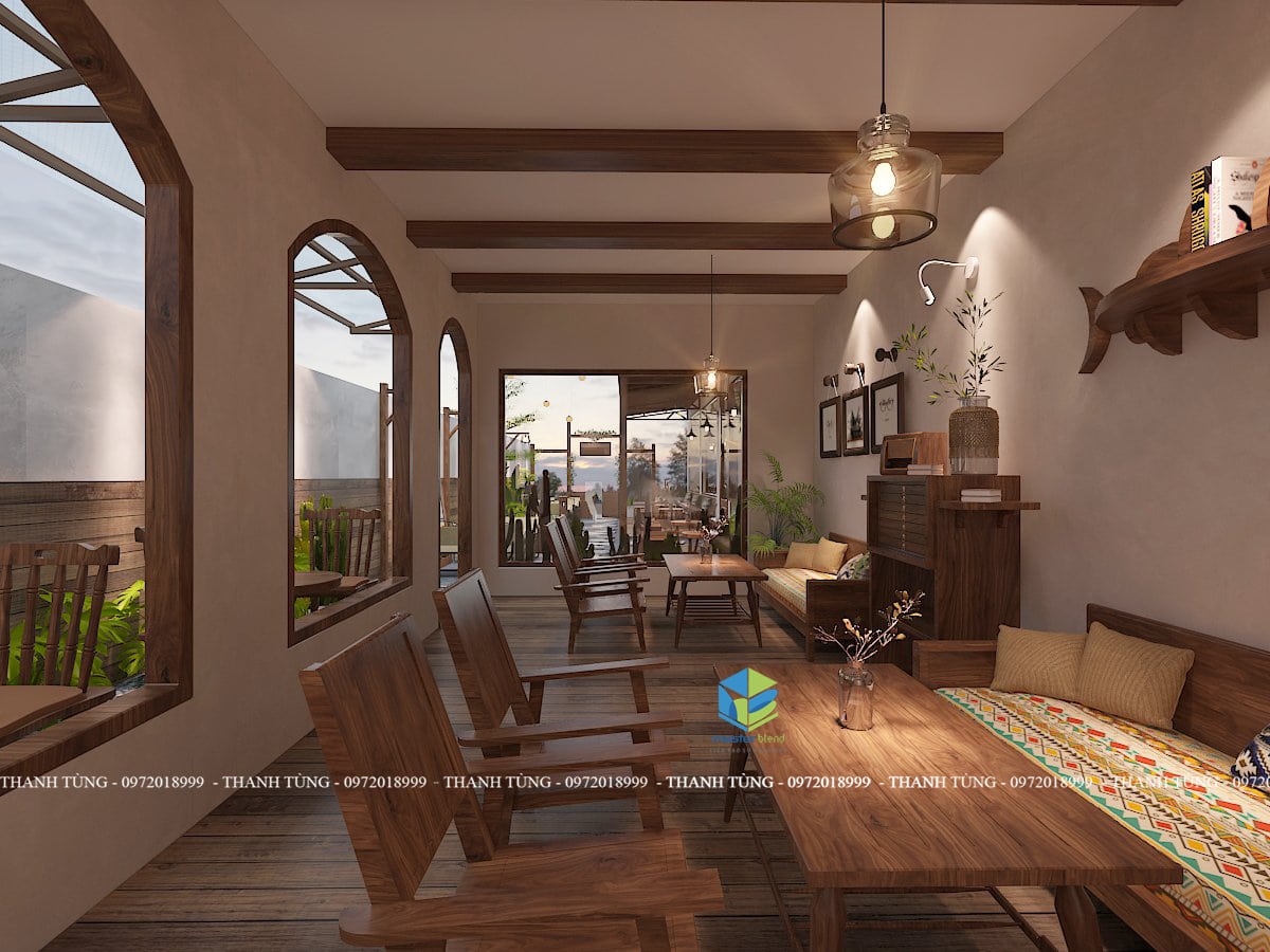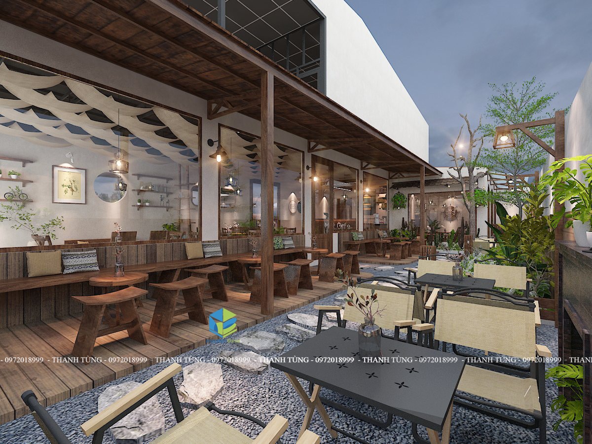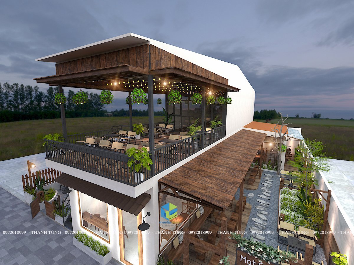 Không gian mở cùng với phong cách thiết kế hiện đại, trẻ trung mang một chút màu sắc Địa Trung Hải khiến thiết kế quán Mọt cafe càng trở nên nổi bật và ấn tượng hơn. Đây chắc chắn sẽ là một địa điểm lý tưởng, rất CHILL  mà khách hàng không thể bỏ qua. Cùng ngắm nhìn phối cảnh 3D của quán được thực hiện bởi Masterblend để hiểu rõ hơn về công trình này nhé.