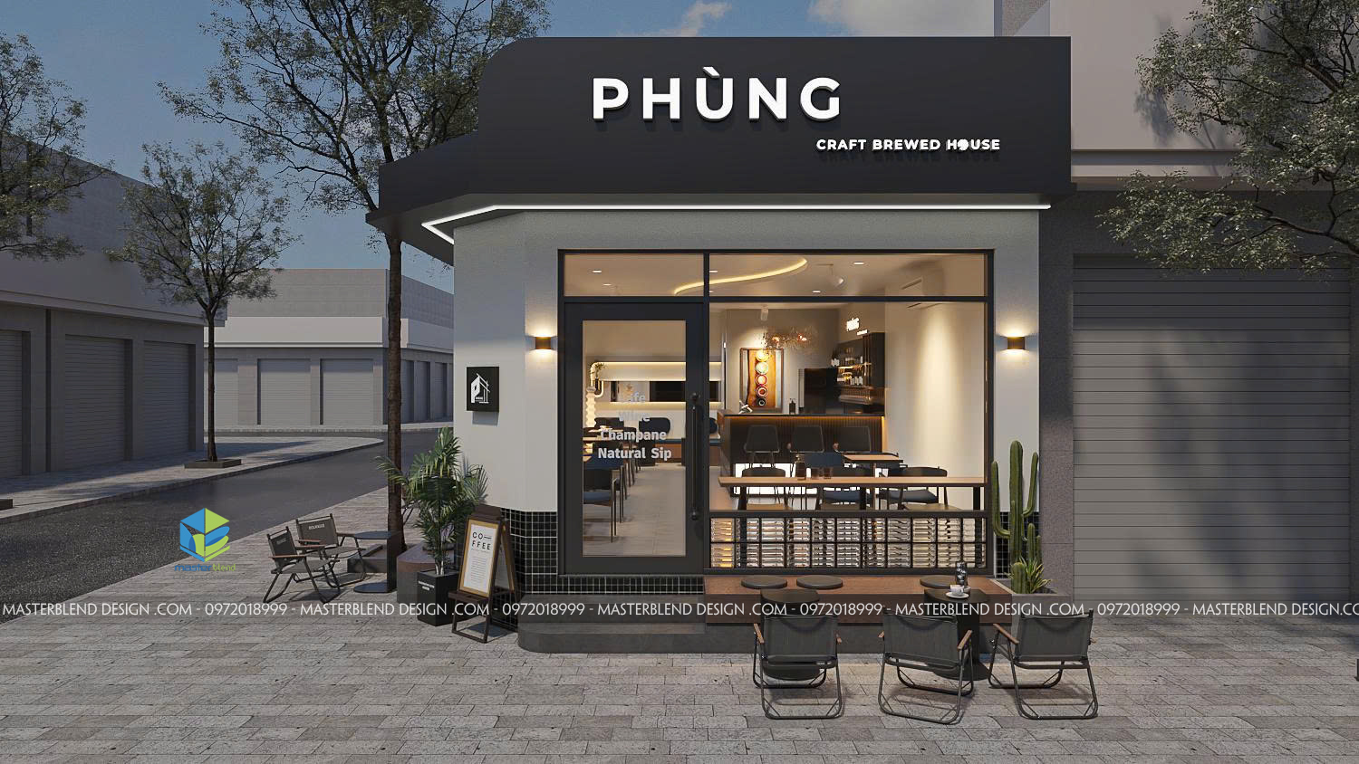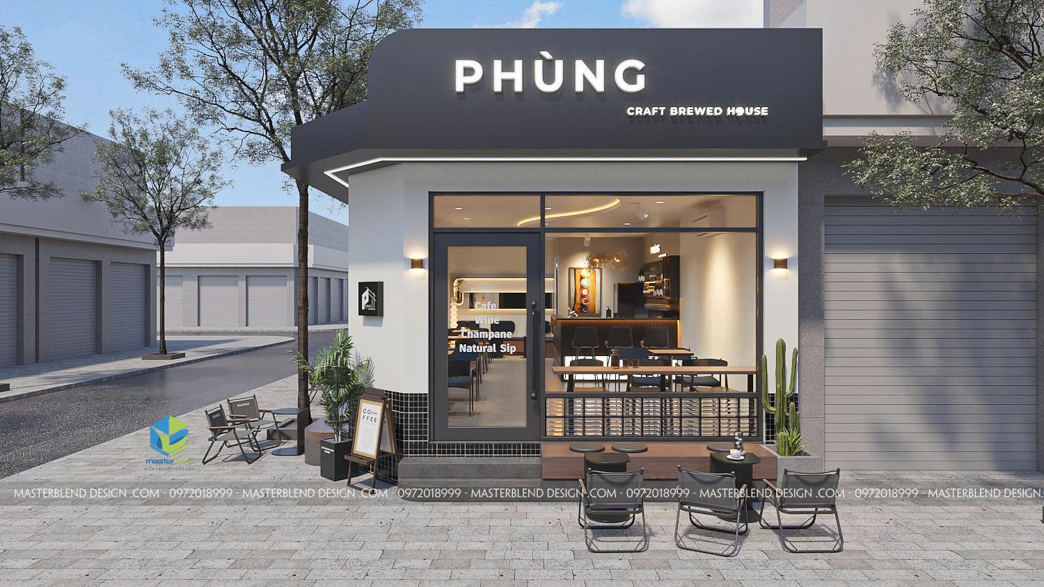 Thiết kế ngoại thất Cafe PHÙNG – Nhận diện rõ ràng, hiện đại