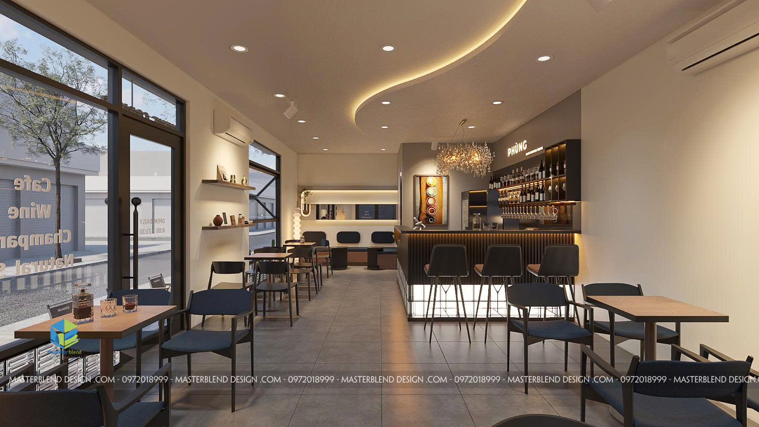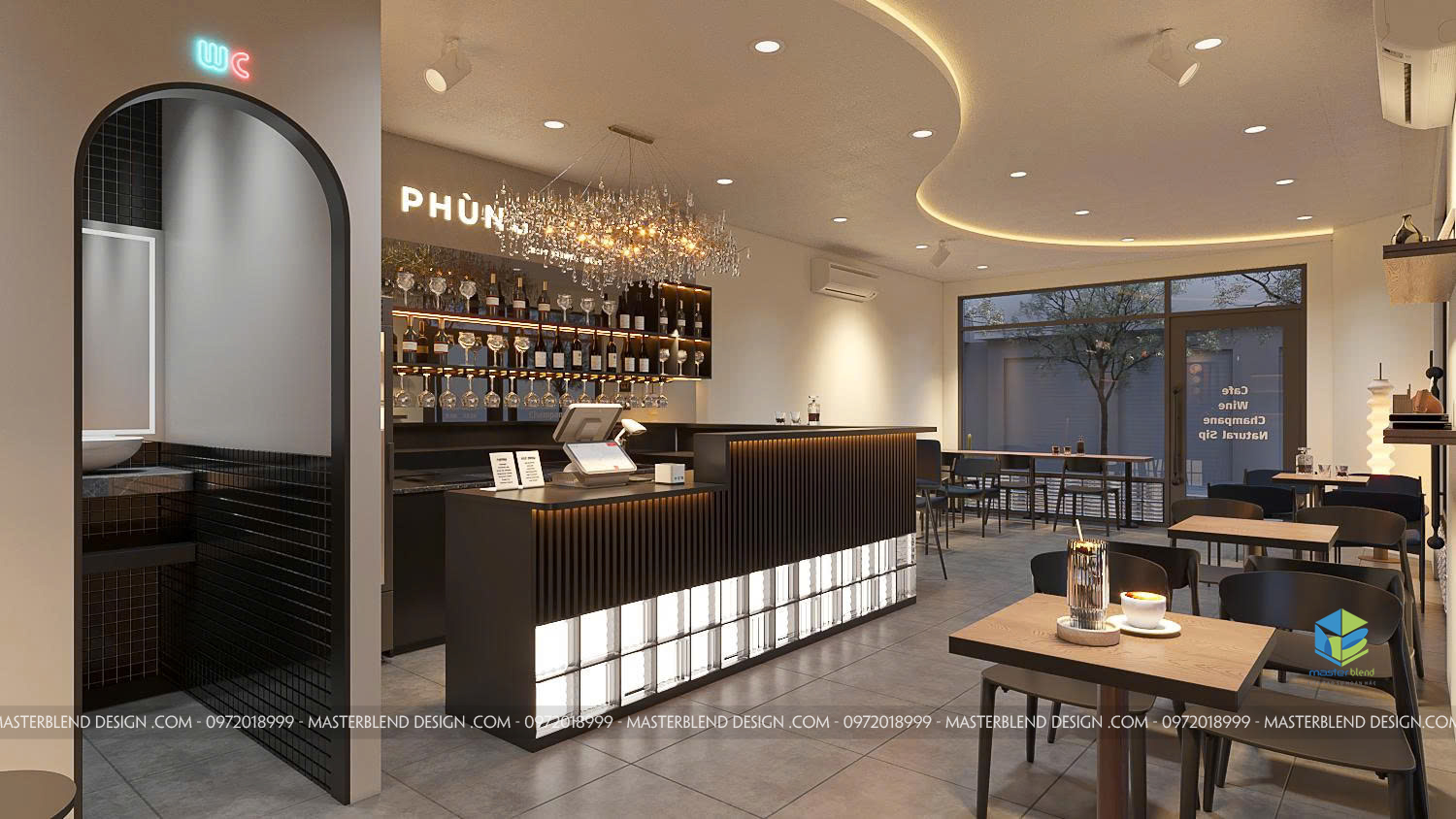 Mẫu thiết kế Cafe PHÙNG tại Vĩnh Phúc – Không gian Cafe & Wine Corner hiện đại, tinh tế