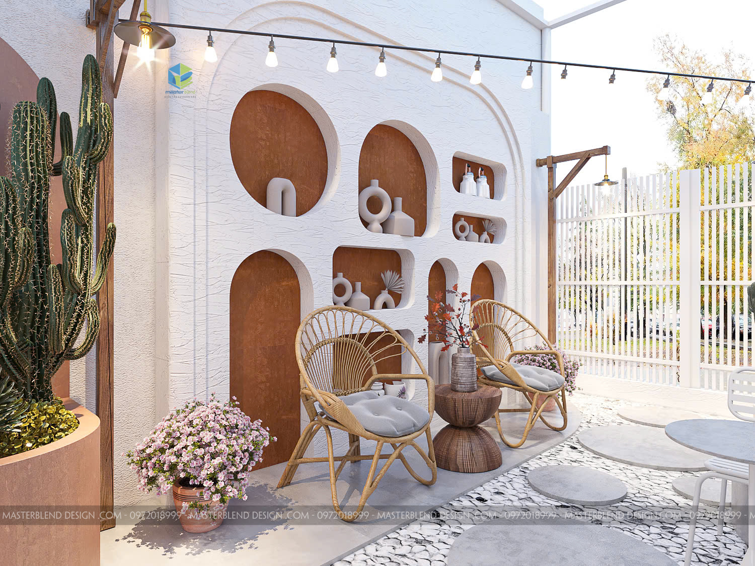 Phong cách: Cafe mang đậm phong cách boho-chic với sự kết hợp hài hòa giữa các yếu tố tự nhiên và hiện đại.
