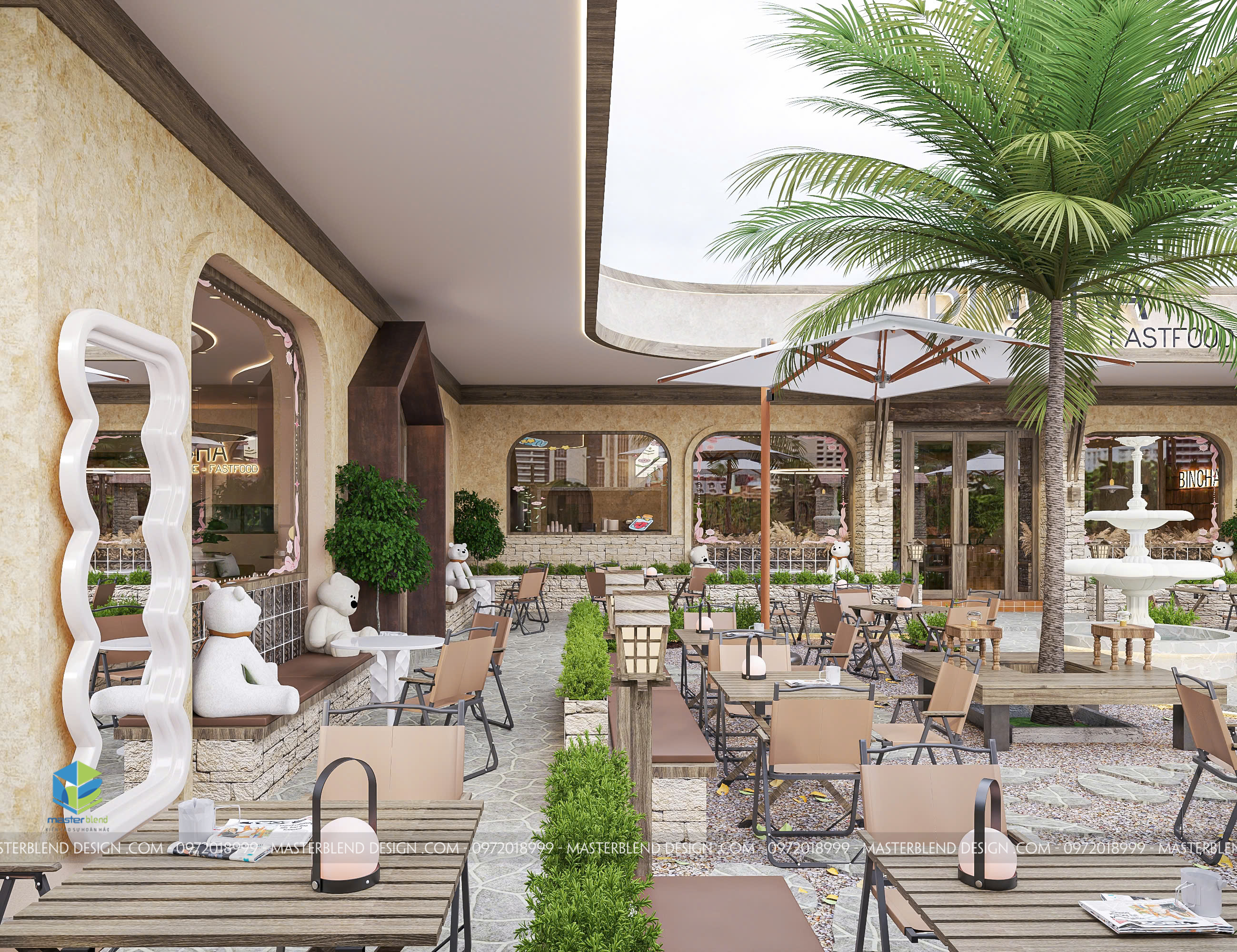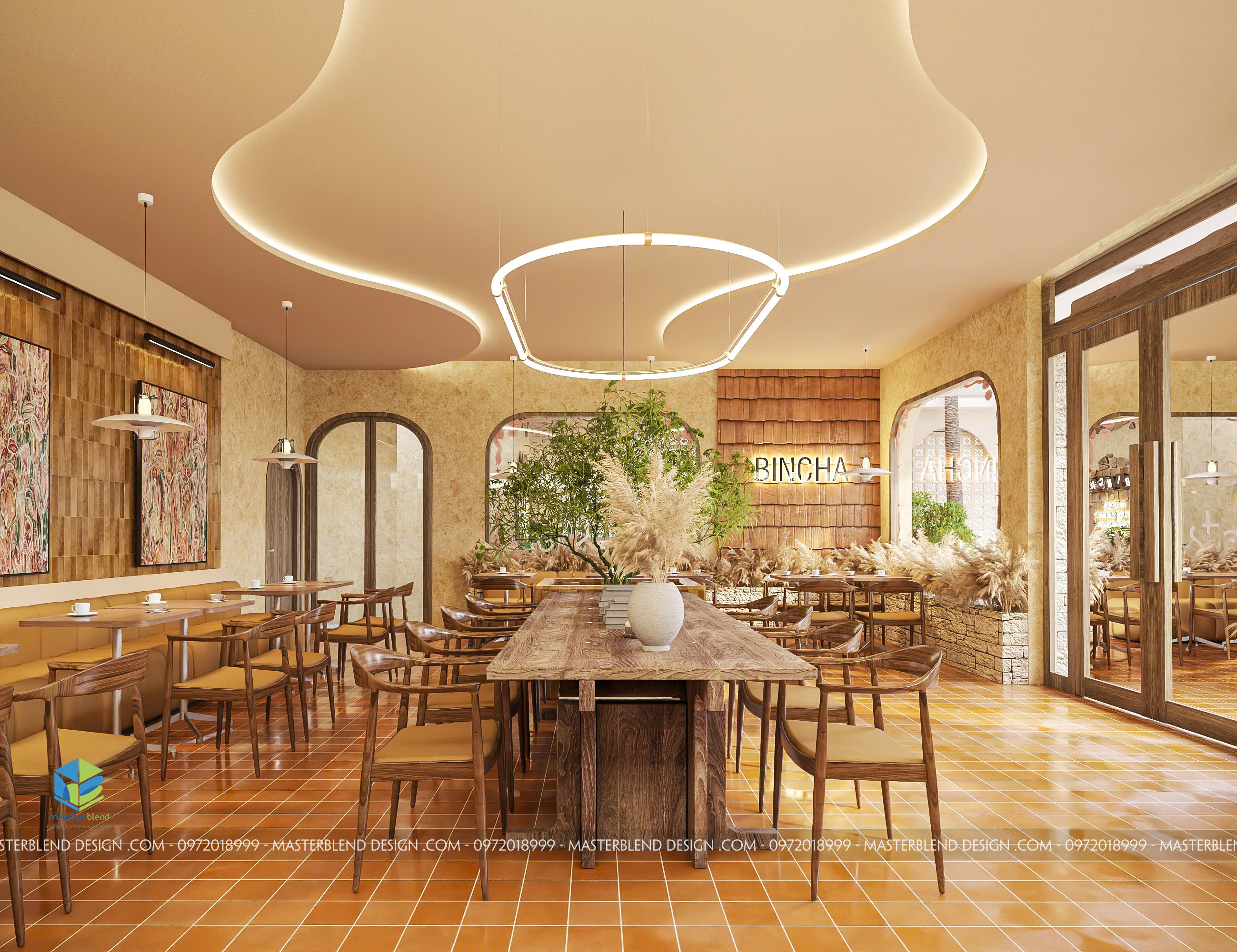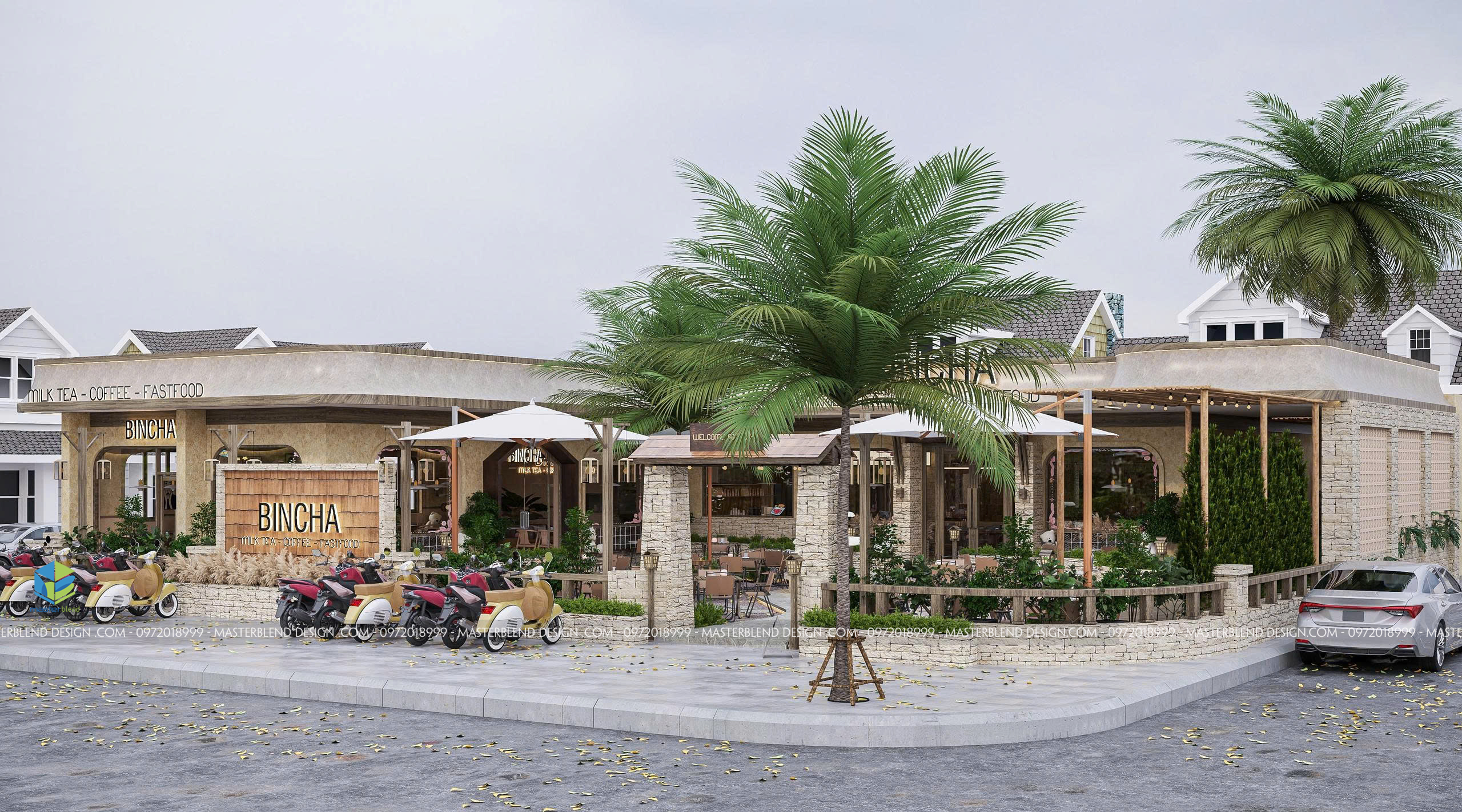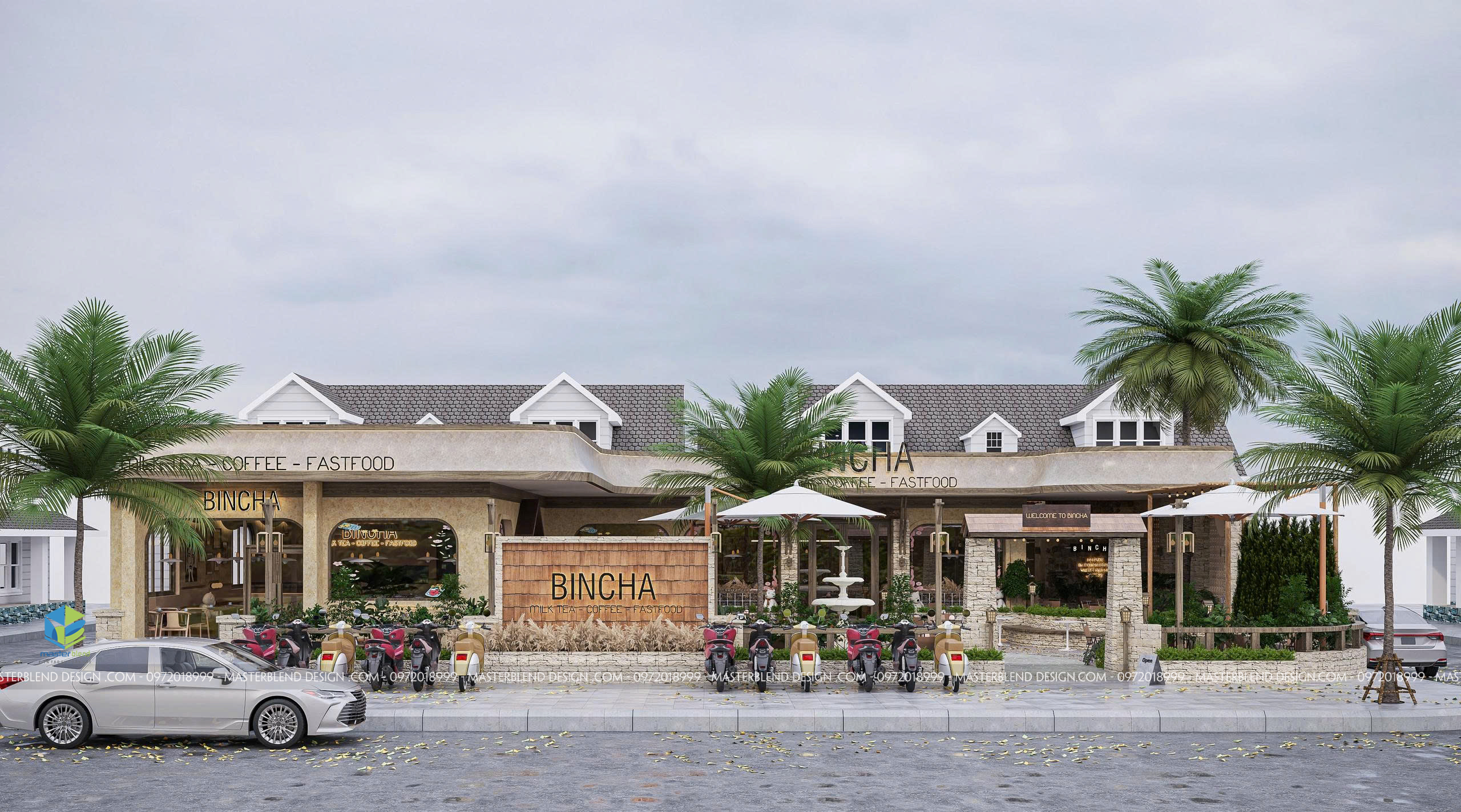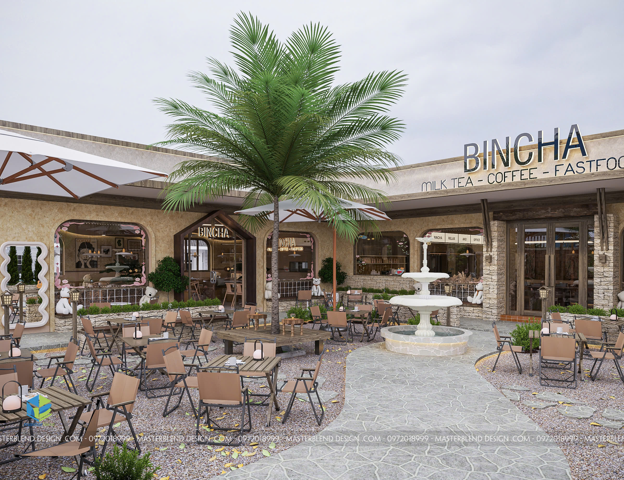 Trong những năm gần đây, xu hướng thiết kế cafe quy mô lớn, không gian mở, kết hợp sân vườn đang trở thành lựa chọn hàng đầu tại các tỉnh thành. Dự án BINCHA tại Nghệ An là một ví dụ tiêu biểu cho mô hình cafe – trà sữa – fastfood “all in one”, được MasterBlend Design thiết kế với quy mô hoành tráng và concept cực kỳ cuốn hút.