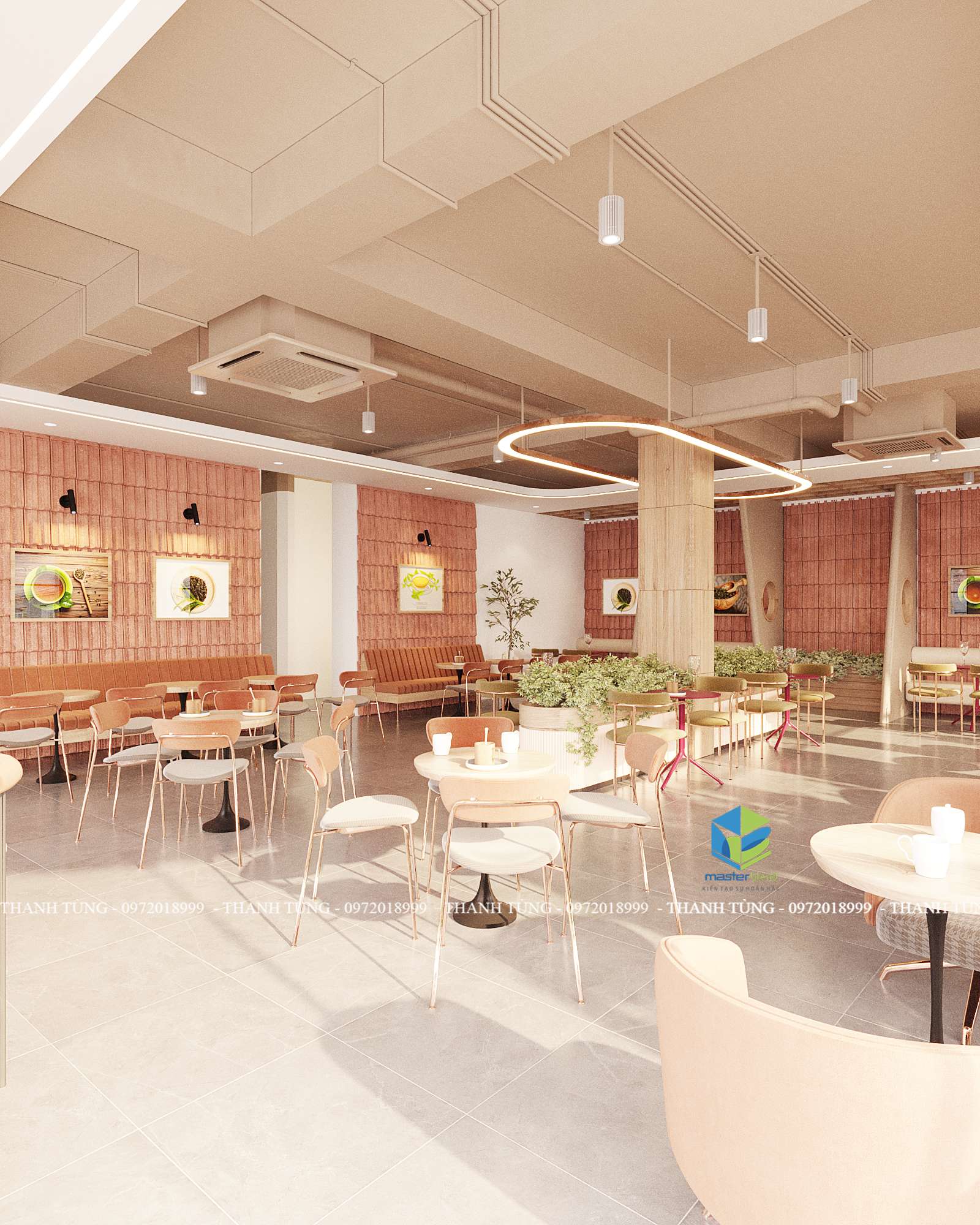 Thiết kế mang đậm chất cao nguyên tự nhiên cùng với yếu tố hiện đại trở nên cuốn hút và đẳng cấp vô cùng. Nơi đây không chỉ là điểm đến để mọi người thưởng thức đồ uống mà còn là nơi thư giãn, giao lưu, trao đổi kinh nghiệm những vấn đề trong công việc, cuộc sống. Nội thất cũng được lựa chọn một cách tỉ mỉ kỹ lưỡng kết hợp với tranh tường trang trí.