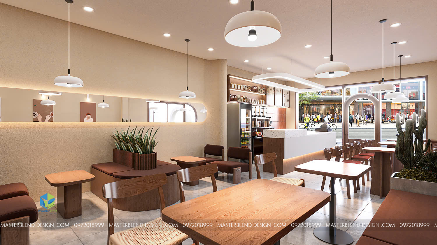 Cimeee Milk Tea được MasterBlend định hình theo phong cách Modern Minimalism – hiện đại tối giản, nhưng không khô cứng nhờ khéo léo đưa vào những đường cong vòm uyển chuyển, cùng chất liệu gỗ ấm và bảng màu trung tính.