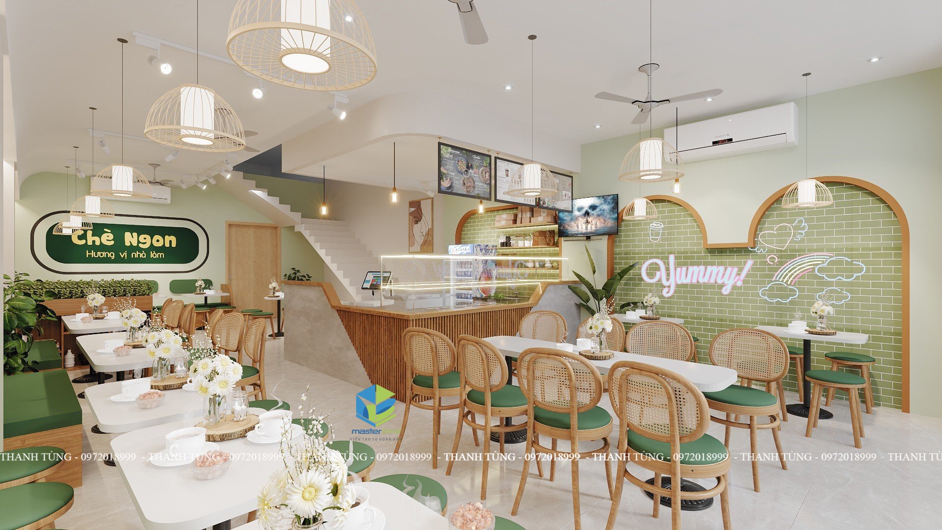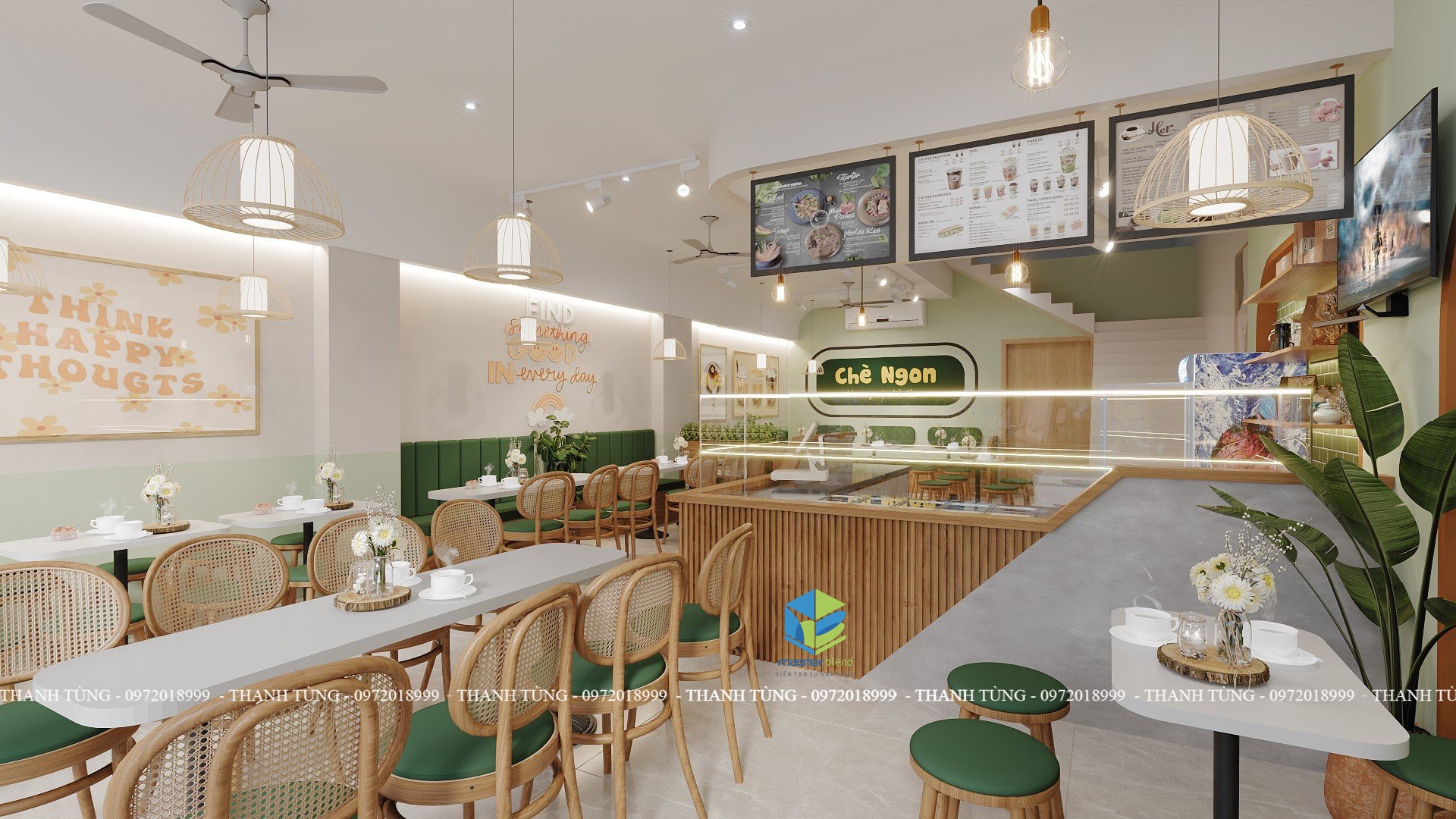 Nhu cầu ăn chè ngày càng trở nên phổ biến ở mọi tầng lớp và mọi khu vực vì thế mà nhiều các quán chè được khai trương để đáp ứng nhu cầu đó. Để có một quán chè đông khách và sinh lời cao chủ quán phải đảm bảo hai yếu tố là chất lượng và không gian bắt mắt. Dưới đây là một thiết kế cải tạo quán chè tại Ninh Bình mời các bạn cùng tham khảo nhé.