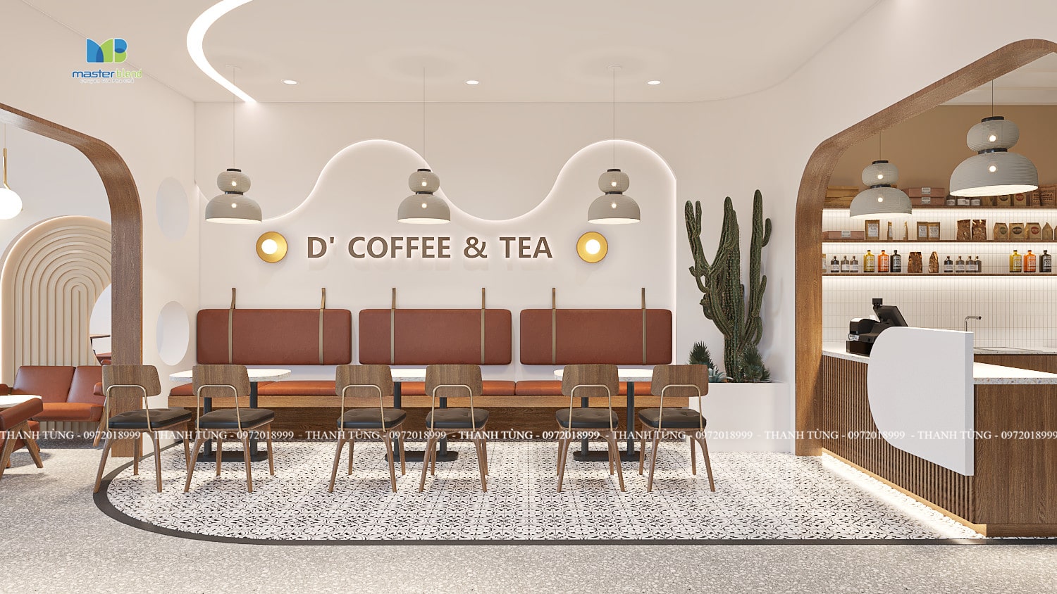 Với phong cách thiết kế quán cafe, thì đa phần các quán đều đi theo phong cách lãng mạn, sang trọng. Tuy nhiên, đối với D’coffee lại mang lại sự đặc biệt mà hầu như chưa bao giờ có, quán thiết kế theo tông màu trắng và cafe, sàn nhà với tông màu đá xám kết hợp gạch bông, quả là một sự kết hợp hài hòa giữa các màu sắc với nhau mang lại cảm giác đẹp mắt cho khách hàng từ ngay cái nhìn đầu tiên. Ngoài ra, nội thất còn chọn những bộ bàn ghế sofa, ghế gỗ tròn, vuông, phía dưới mỗi ghế có thêm phần đệm bông giúp cho người uống cafe thoải mái ngồi thời gian lâu để nhâm nhi tách cafe.