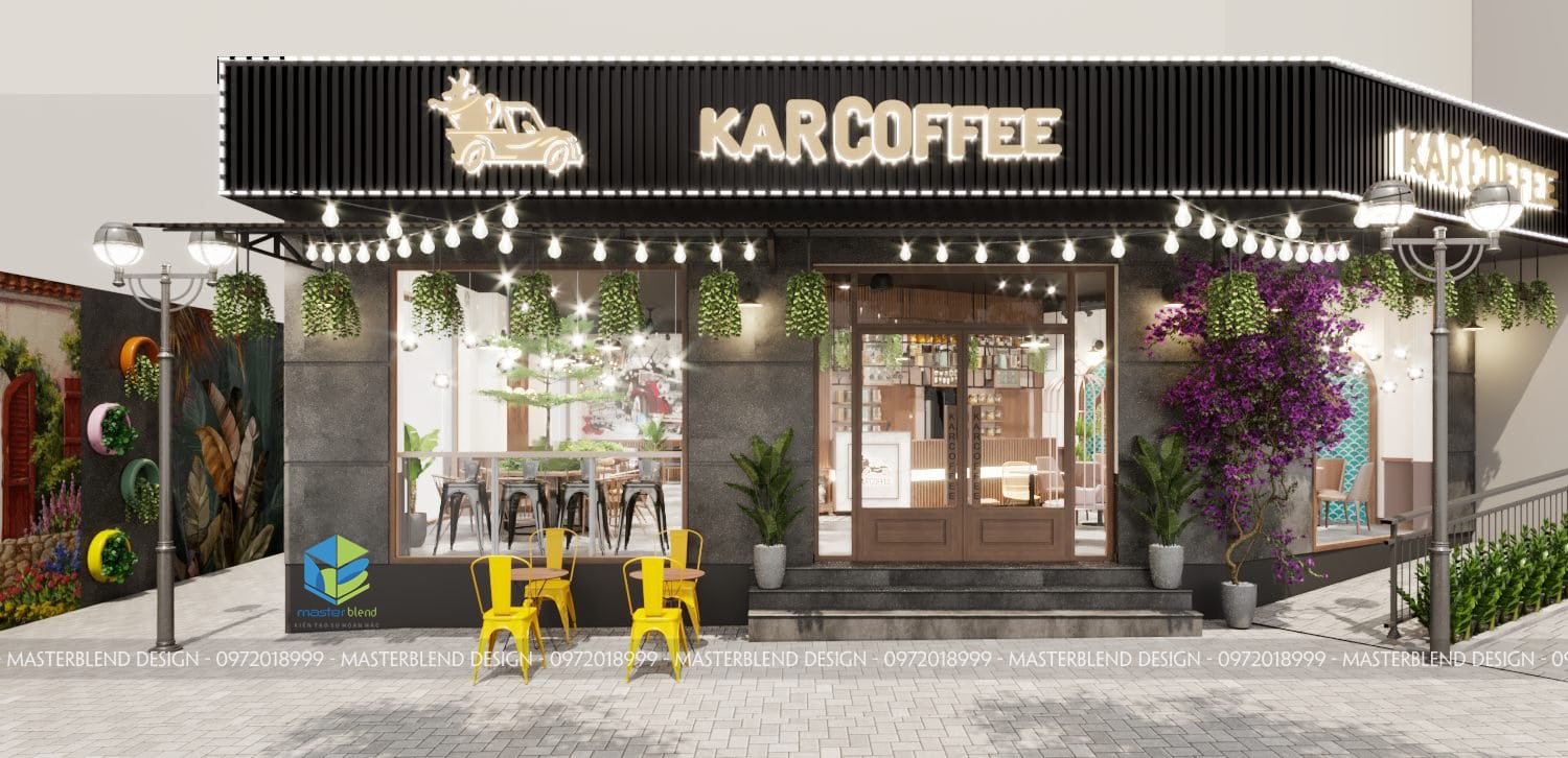 Karcoffee được thiết kế với không gian mở, vừa hiện đại lại vừa vintage. Bên ngoài là tổng thể hoàn hảo, với view cafe ngoài trời hoà mình với thiên nhiên cây cỏ thoáng đãng, tự do