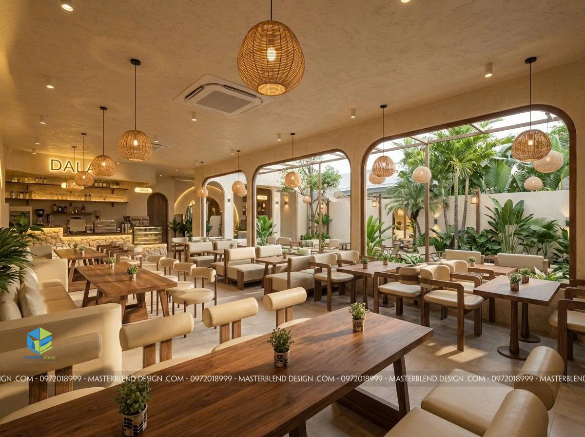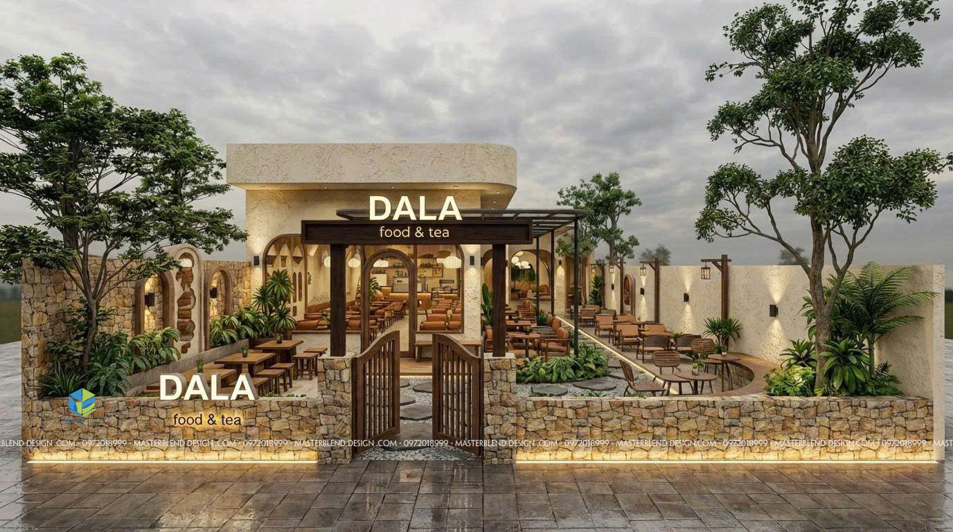 Trong xu hướng thiết kế quán cafe hiện nay, những không gian mở, gần gũi thiên nhiên và mang tính trải nghiệm cao đang ngày càng được ưa chuộng. Dự án DALA Food & Tea tại khu vực Bắc Giang (cũ) – nay thuộc Bắc Ninh là một minh chứng tiêu biểu cho phong cách này. Công trình được thiết kế theo hướng cafe sân vườn kết hợp không gian indoor – outdoor, tạo nên một tổng thể hài hòa, tinh tế và đầy cảm xúc.