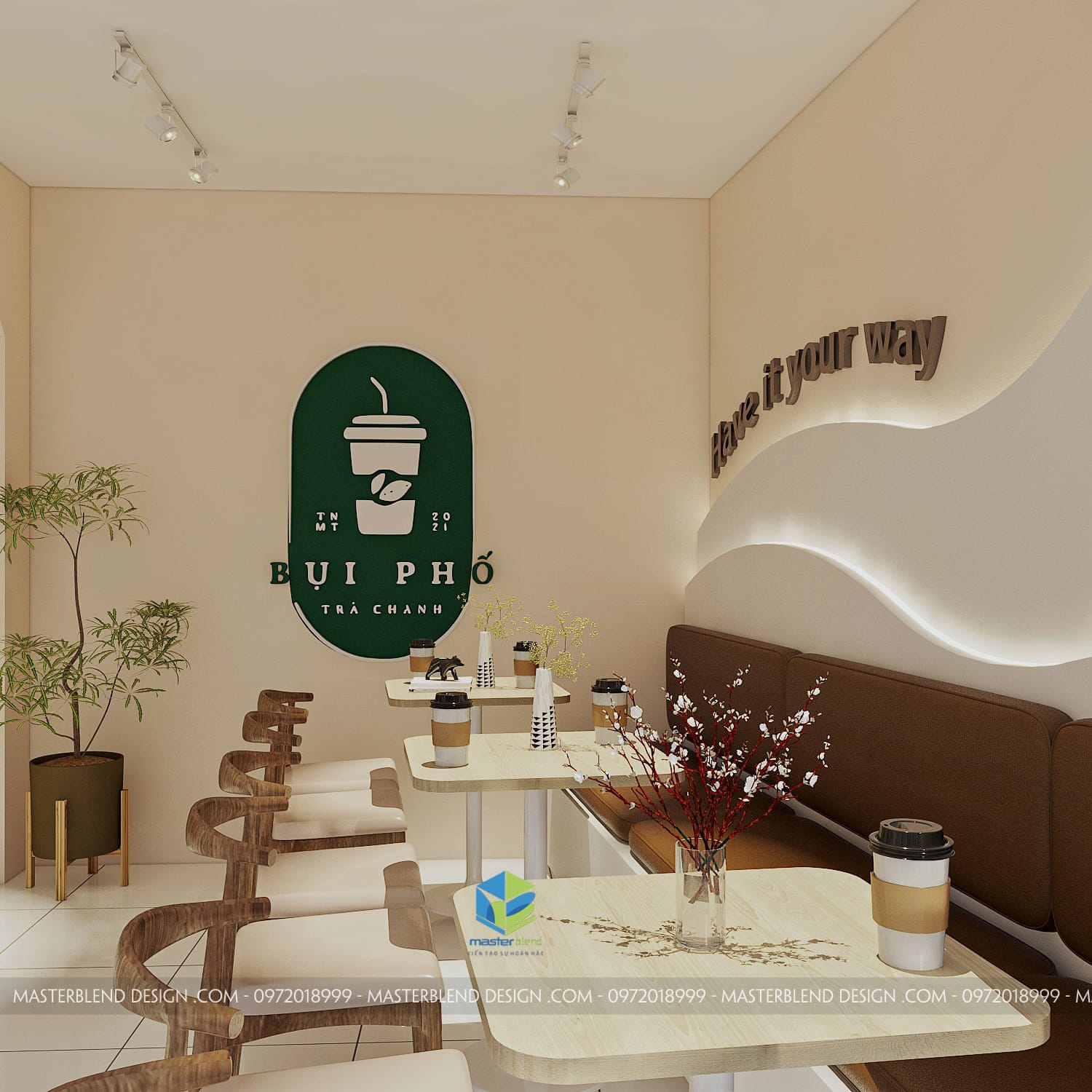 Không gian nội thất quán trà chanh hiện đại tại Thành phố Nam Định, được Kiến trúc MasterBlend thiết kế mang đến một sự kết hợp hoàn hảo giữa sự tinh tế và thoải mái, tạo nên một trải nghiệm đặc biệt cho khách hàng.