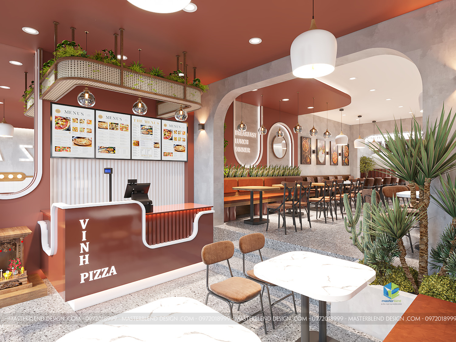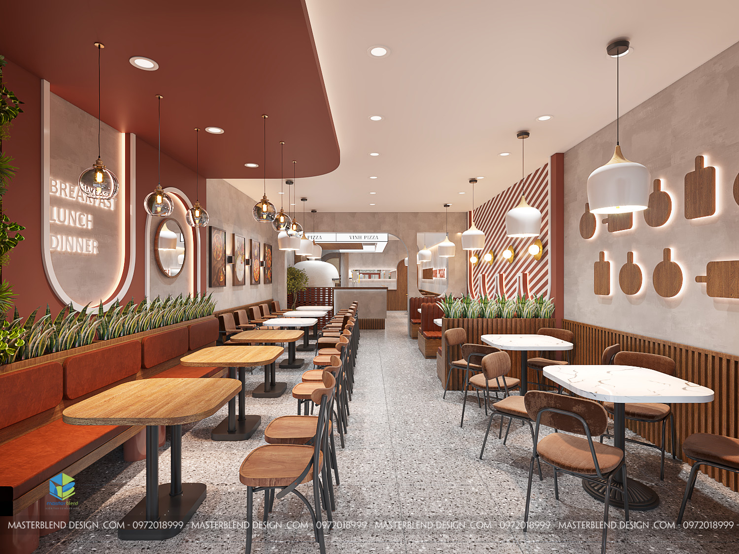 Tổng thể không gian nội thất của Vinh Pizza không chỉ là nơi thưởng thức ẩm thực mà còn là một điểm đến lý tưởng để thư giãn, gặp gỡ bạn bè và gia đình. Từ thiết kế chi tiết đến màu sắc, ánh sáng và trang trí, mọi thứ đều được sắp xếp hài hòa, tạo nên một không gian đẳng cấp, hiện đại nhưng vẫn ấm áp và gần gũi.