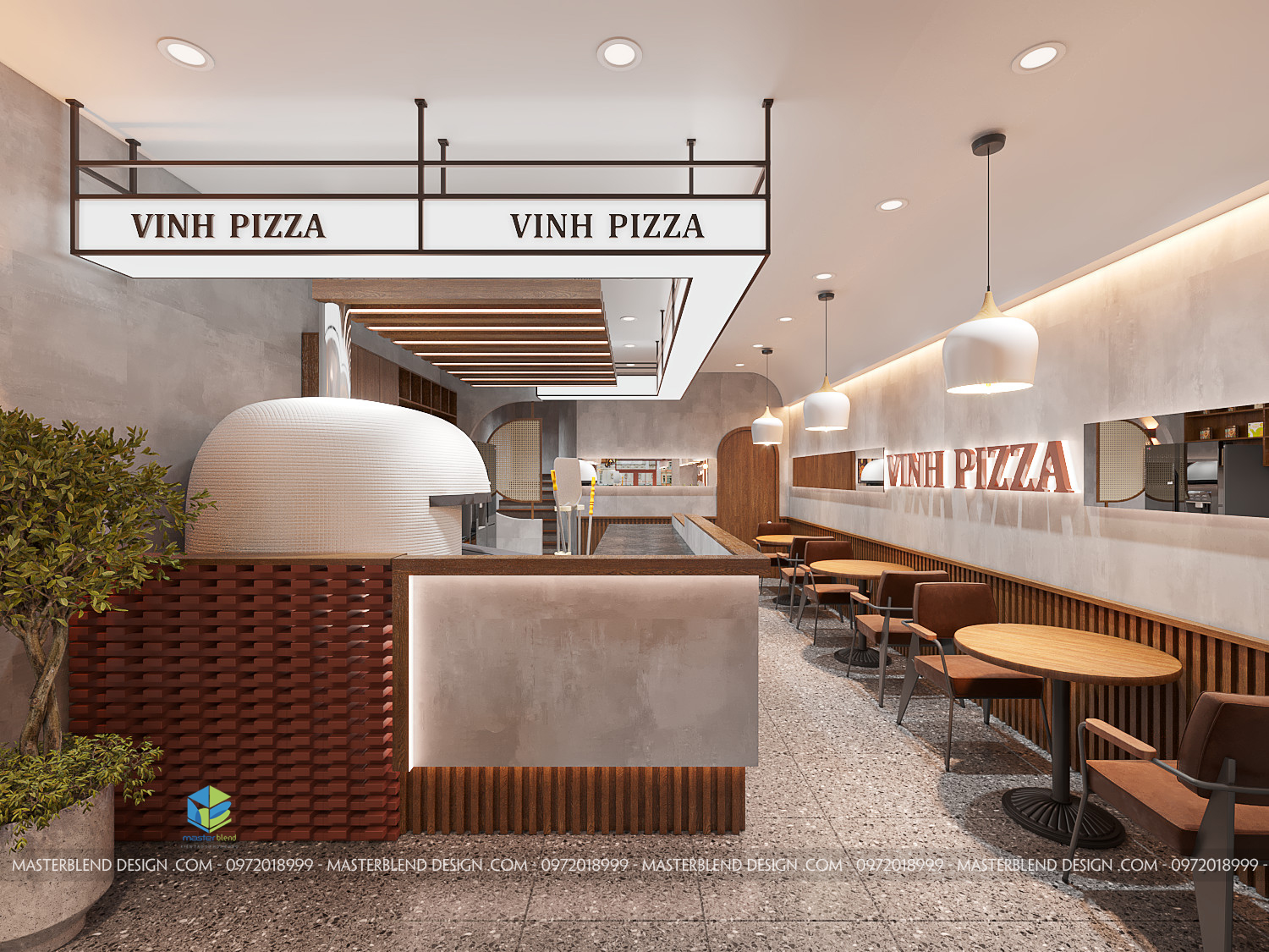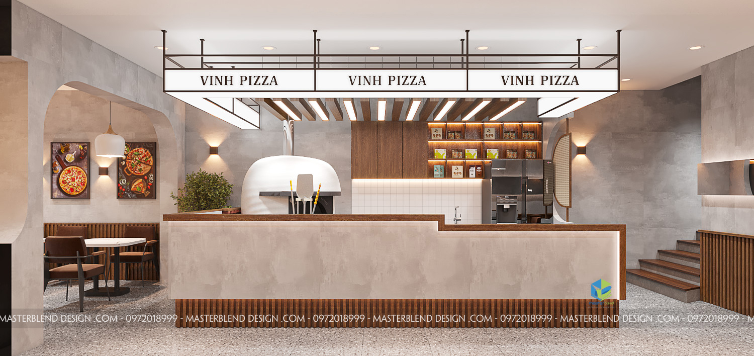 Vinh Pizza không chỉ mang đến những chiếc pizza thơm ngon, hấp dẫn mà còn là nơi đem lại trải nghiệm không gian độc đáo, hiện đại. Được thiết kế toàn diện bởi kiến trúc sư từ Masterblend, cửa hàng mang đến vẻ đẹp thẩm mỹ từ ngoại thất đến nội thất, hứa hẹn sẽ là địa điểm check-in lý tưởng cũng như không gian ăn uống tuyệt vời cho thực khách.