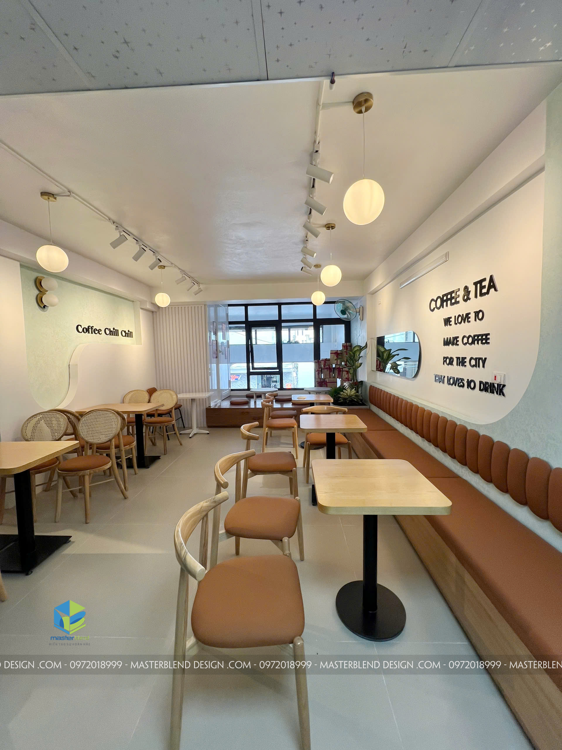 Cafe Hương Chill là một công trình được MasterBlend Design trực tiếp thiết kế và thi công trọn gói, hướng đến nhóm khách hàng trẻ, dân văn phòng và khách yêu thích không gian nhẹ nhàng, thư giãn.