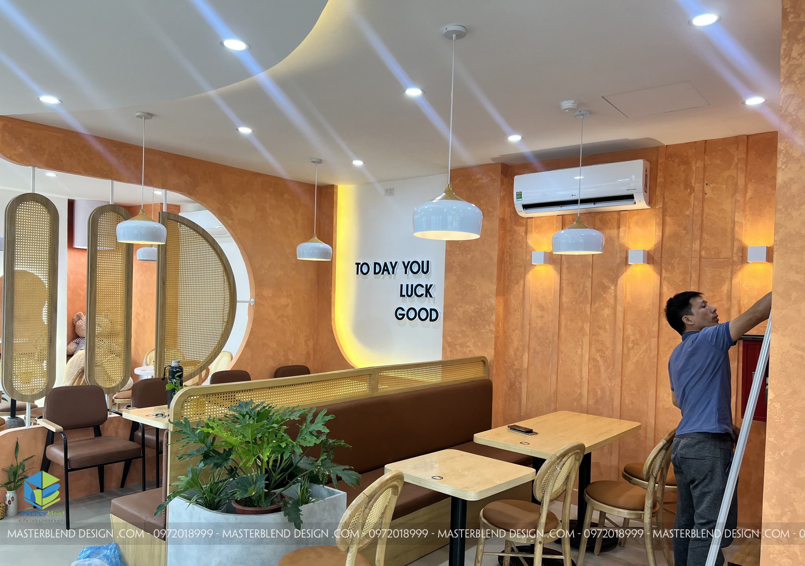 Masterblend đã áp dụng quy trình thi công chuyên nghiệp và bài bản cho Quán Mơ, từ khâu thiết kế, lựa chọn vật liệu đến lắp đặt nội thất và hoàn thiện các chi tiết trang trí. Đội ngũ thi công đã kết hợp sử dụng các công nghệ hiện đại như cắt CNC cho các chi tiết trang trí chữ nổi, hệ thống đèn LED thông minh và các vật liệu cao cấp như gỗ tự nhiên, da và kim loại. Mọi giai đoạn đều được thực hiện với sự chính xác và cẩn thận, đảm bảo chất lượng cao nhất và độ bền lâu dài cho công trình.