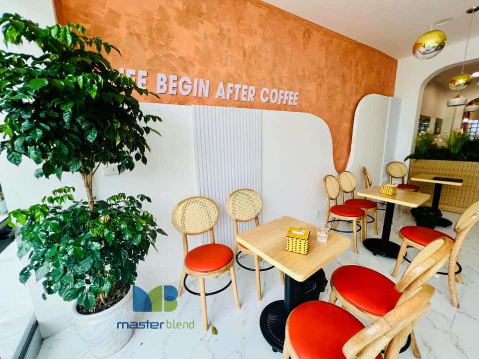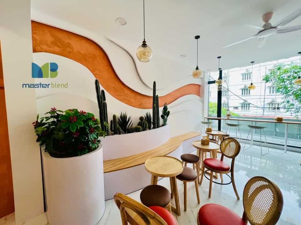 Không gian của tiệm chè Mây tại thành phố Ninh Bình, do đội ngũ kiến trúc Masterblend setup, mang đến một trải nghiệm thẩm mỹ hiện đại và ấm cúng. Khi bước vào quán, khách hàng sẽ ngay lập tức bị cuốn hút bởi thiết kế nội thất tinh tế và sang trọng.